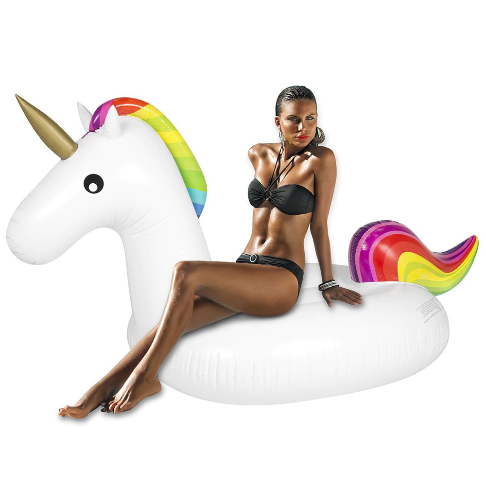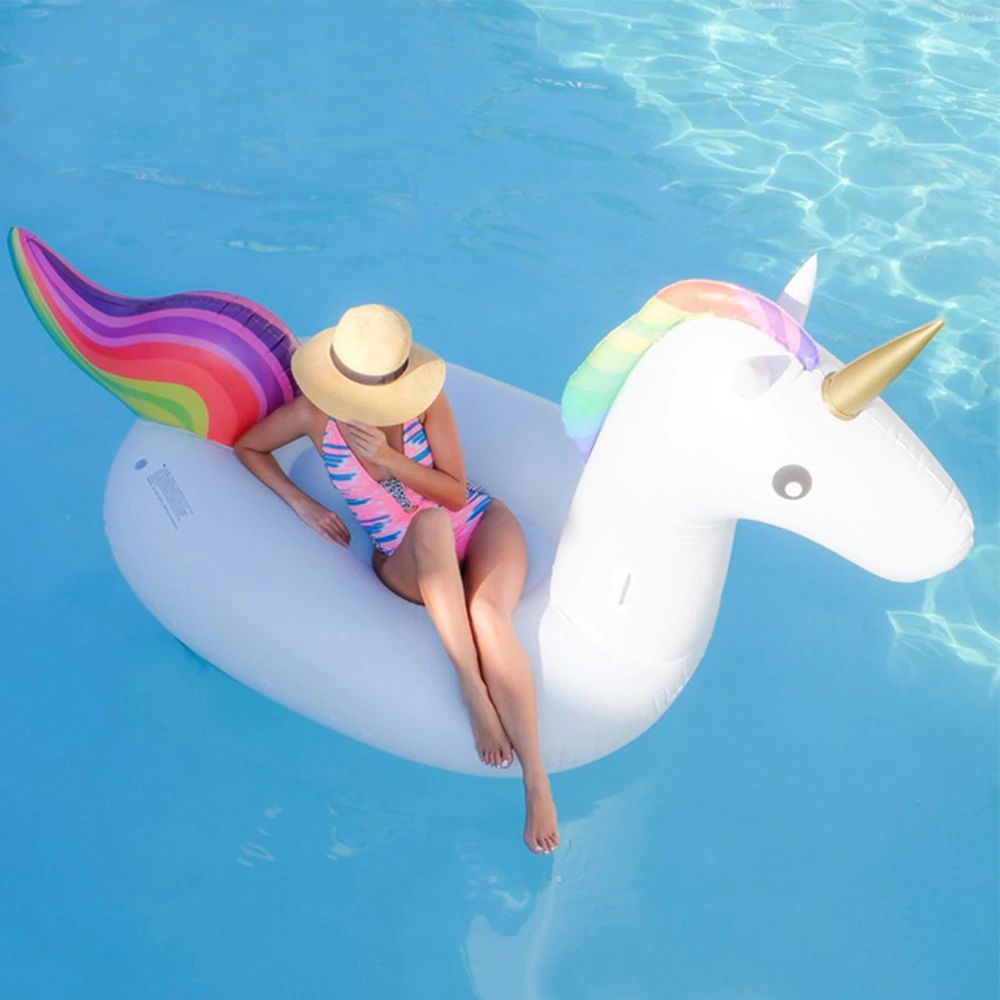 Sparkly pool adventures await! Dive into summer fun with this adorable 90cm inflatable unicorn pool float. Light and portable, it's perfect for beach, lake, or poolside parties. Shine on make a splash! (Color may vary slightly.)